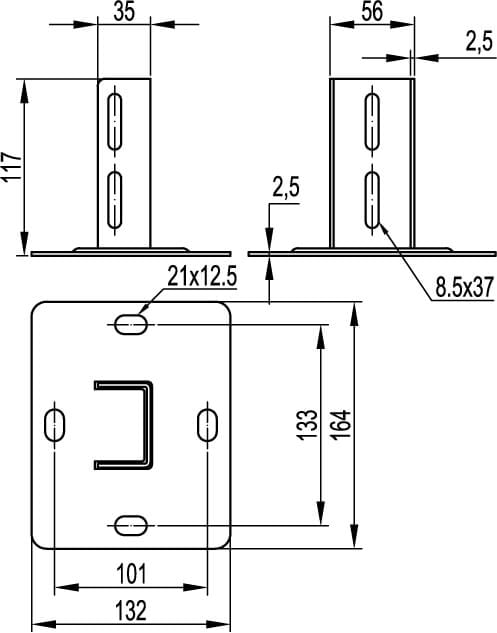Крепление к потолку BSF-29, применяется в качестве напольной опоры, может крепиться к потолку для организации подвеса трассы, монтаж профилей BPL-29 и ВРМ-29, монтаж консолей серии BBL-40, BBL-50. В основании 4 отверстия под метизы М8. Противокоррозионное цинкнаполненное покрытие повышает срок службы изделия в условиях агрессивных сред и высокой влажности.