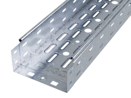 Перфорированные листовые лотки ДКС применяются для прокладки кабеля как в помещении, так и на открытом воздухе. Лотки отличаются высокой несущей способностью – подформовка, производимая при производстве этой продукции, создает дополнительное ребро жесткости, что увеличивает несущую способность системы до 54%. Перфорация сокращает вес конструкции. В лотках имеются отверстия для отвода кабеля диаметром 11 мм, 17 мм, 21 мм. Степень пыле- и влагозащиты перфорированных лотков – IP 10 при использовании крышек, входящих в состав системы. Метод соединения "мама-папа" применяемый для системы, существенно сокращает время монтажа и создает непрерывный контур. Конструктив листовых лотков ДКС предупреждает повреждение кабеля при прокладке.
