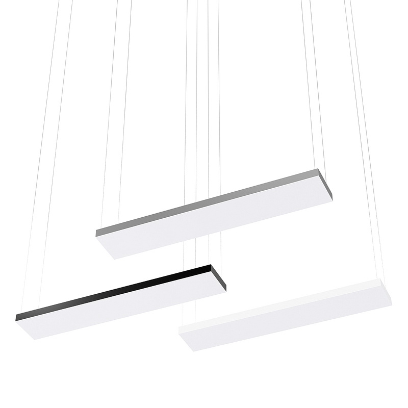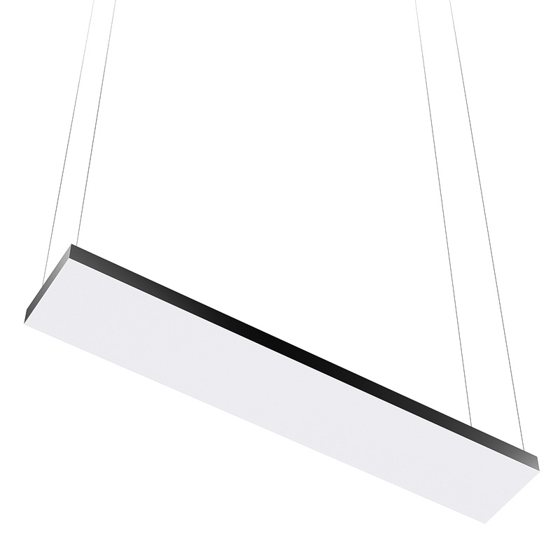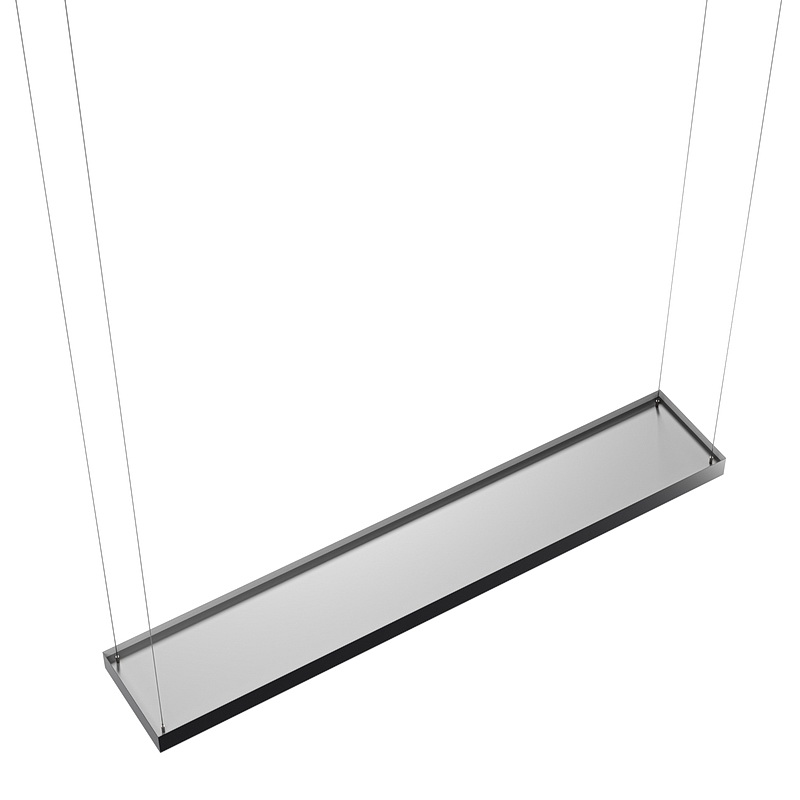 Корпус светильника прямоугольной формы может быть выполнен в черном, белом и сером цветах. Цветовая температура на выбор: теплый цвет (3000К), нейтральный (4000К) или холодный (6500К). Материал корпуса – металл, размеры на выбор. Вариант монтажа – подвесной потолочный.
