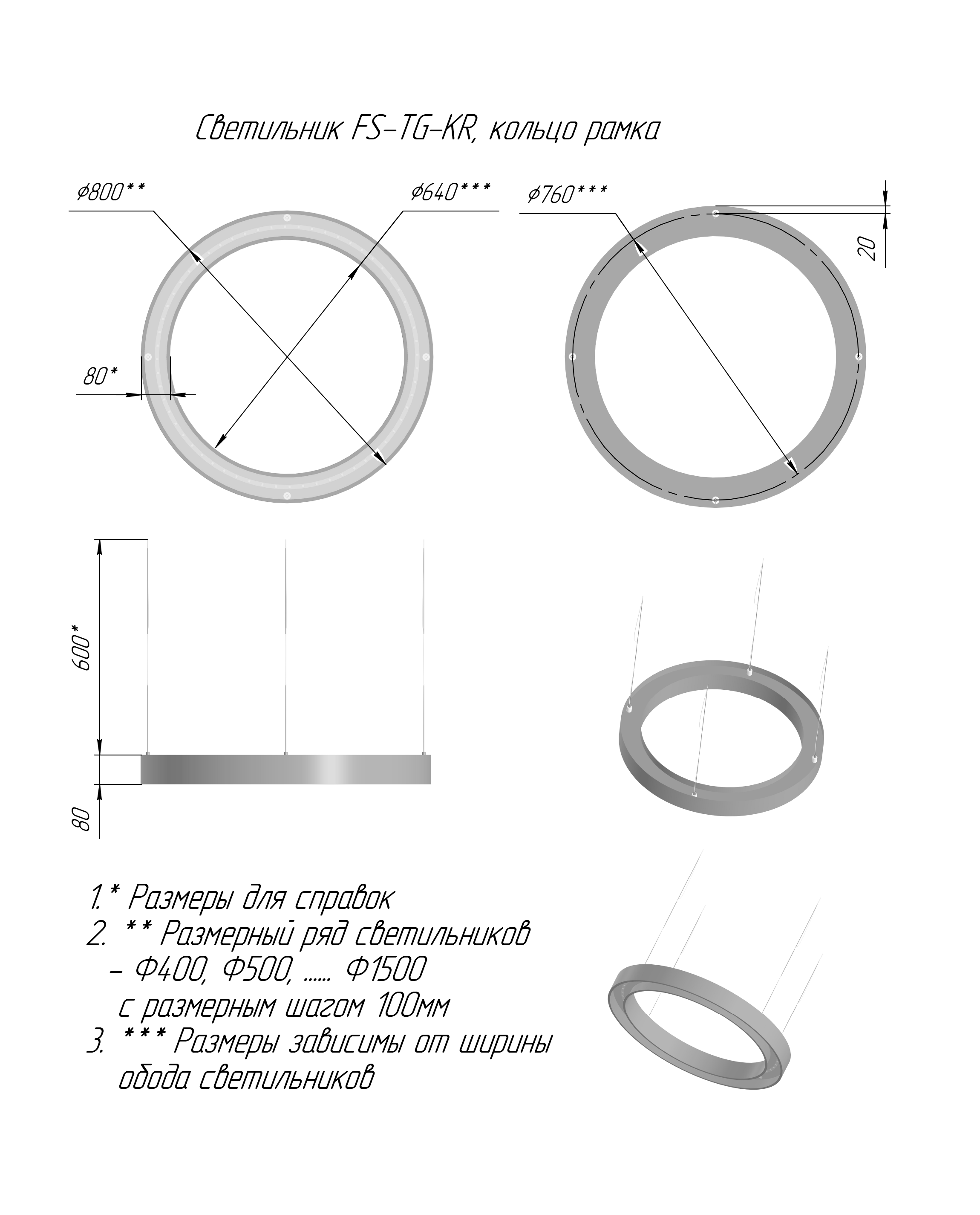 Для монтажа светильников используются тросовые подвесы длиной 1 метр. При необходимости можно заказать подвесное крепление другой длины или крепления для накладного монтажа.