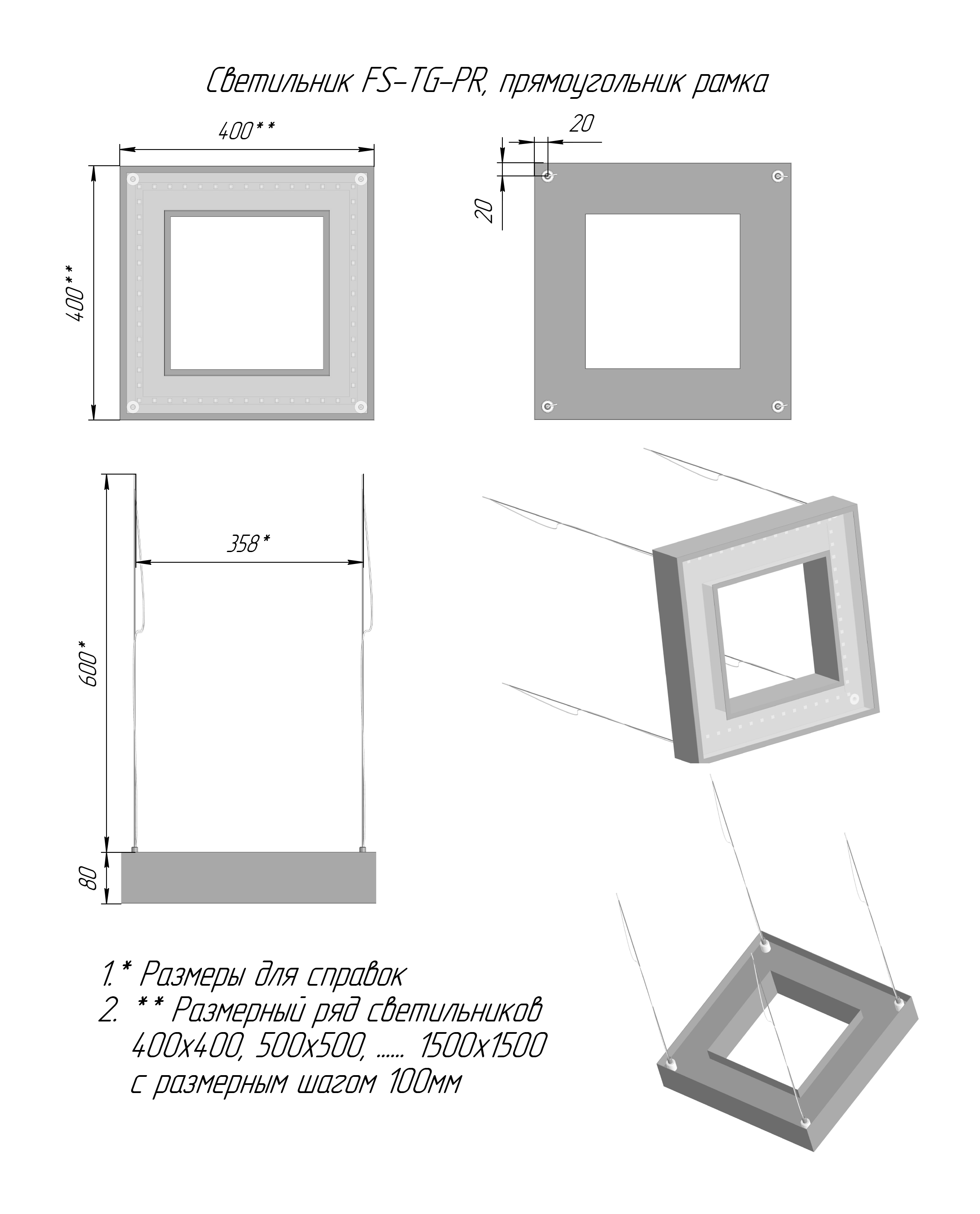 Светильник FS-TG-PS, прямоугольник, сплошной