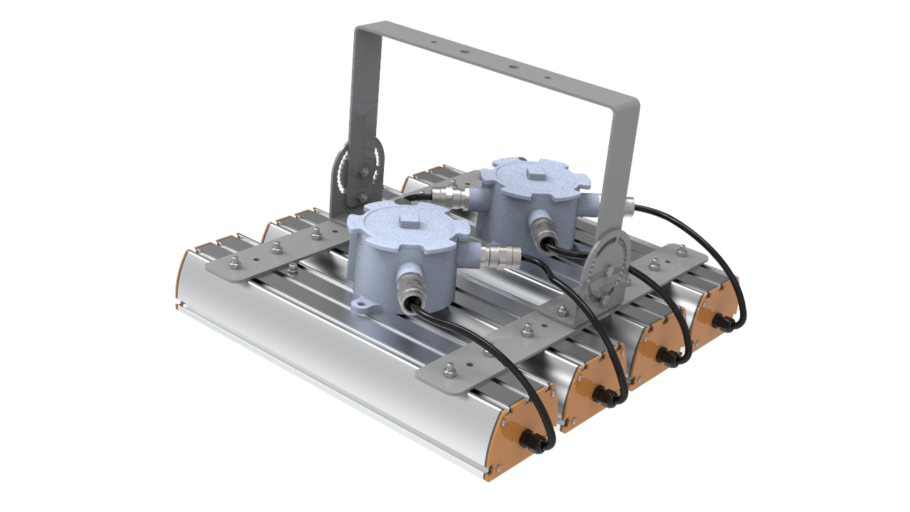 Взрывозащищенные светильники. 2Ех nС IIC T6 Gc Х Ex tc IIIС T85°C Dc X Светильник снабжен постоянно присоединенным кабелем питания. Светильник оснащен универсальным поворотным или иным креплением. Структура условного обозначения светильников: SVT-Str Х1-Х2-Х3-Х4-X5(-X6) где SVT-Str – производитель и область применения; Х1 – тип оборудования: MPRO – универсальный светильник, Х2 – мощность светильника, Вт; Х3 – маркировка взрывозащищенного исполнения; X4 - количество базовых модулей: MONO, DUO, TRIO, QUATTRO; X5 - диаграмма кривой силы света (КСС); (X6) - крепление светильника: не ставится - универсальное, консольное (-C), подвесное (-RB). По запросу: - Низковольтное исполнение (AC/DC 12 - 36 В); - Крепление светильника: Подвесное (Рым-болт) или консольное на трубу диаметром до 55мм; - Аварийное исполнение (БАП на 1 - 3 часа).